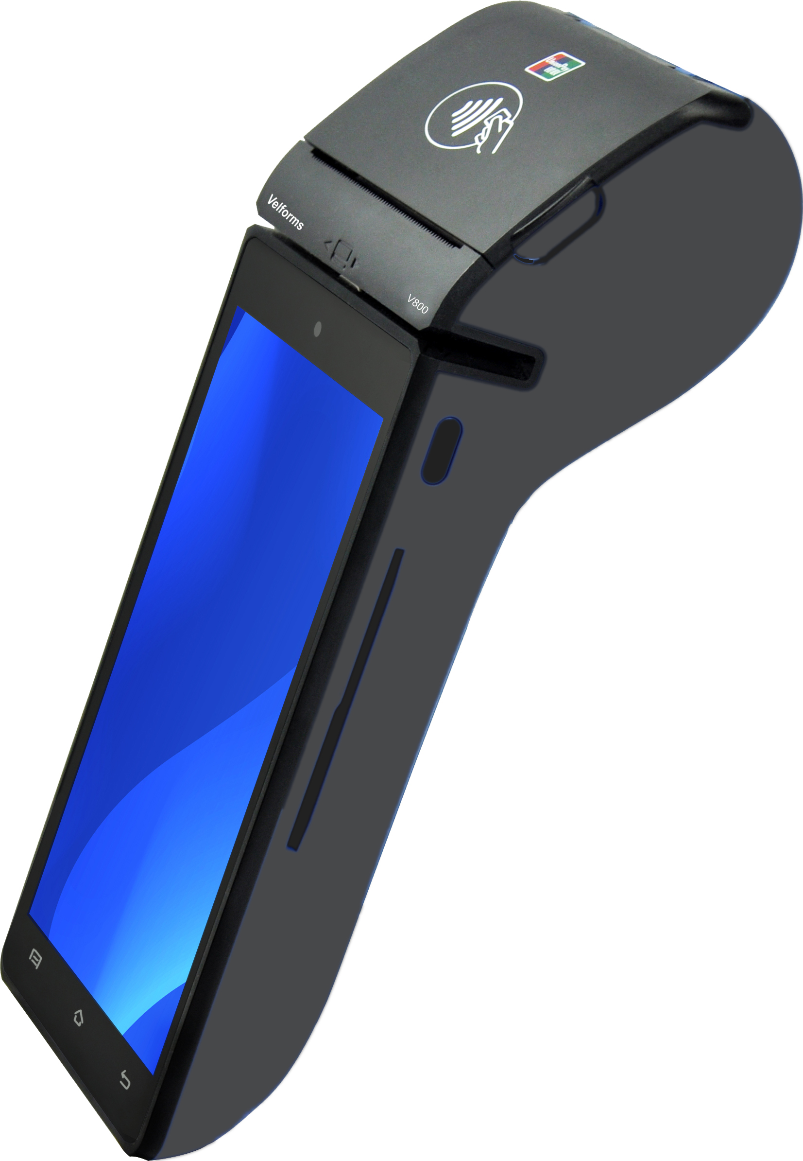 The V800 has a stunning color touch-screen, a powerful processor and a long-lasting battery life. Designed to reduce environmental footprint as well as stationery costs, the V800 does not come with an inbuilt printer, but can be paired up to one via Bluetooth connectivity. If customers need a receipt, it can be delivered by SMS or email.